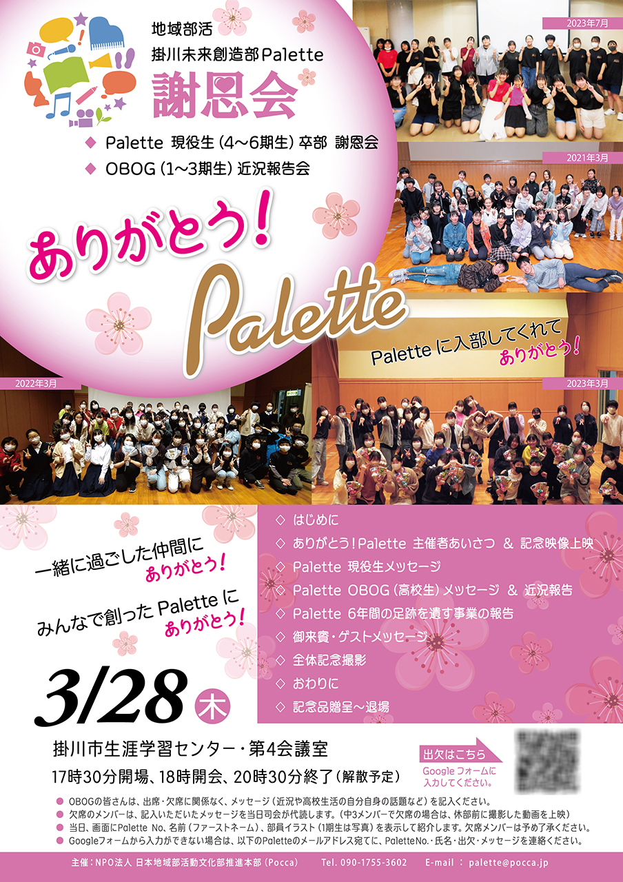 創部当初よりPaletteの活動にご理解とご協力をいただいた皆様に厚く御礼申し上げます。